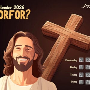 Med denne kalenderen får dere hjelp til å samle familien hver dag gjennom hele påsken. På veggen henger en stor og dekorativ plakat (30 × 40 cm) som leder dere steg for steg gjennom påskens sterke budskap – fra palmesøndag til 1. påskedag.
