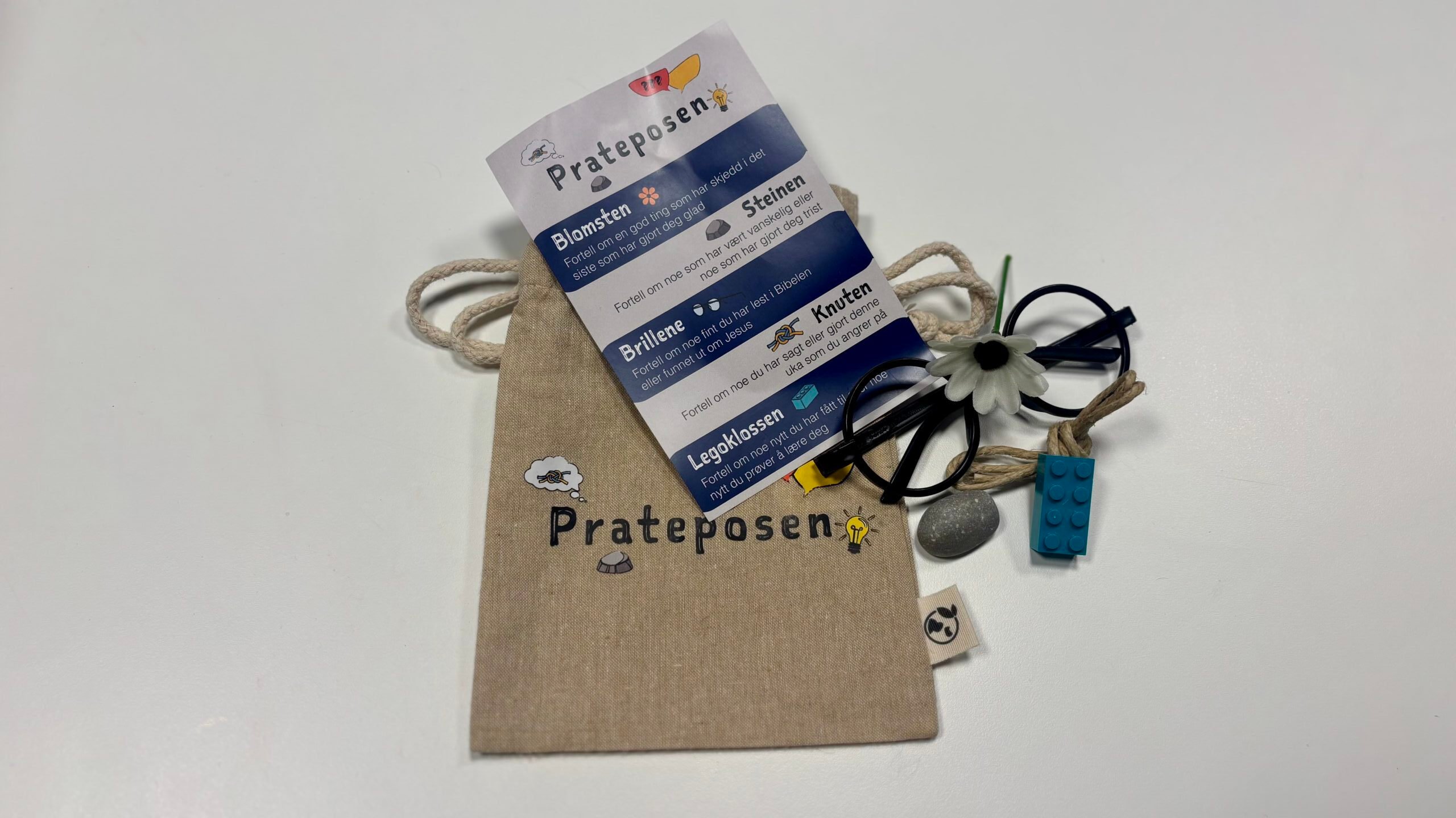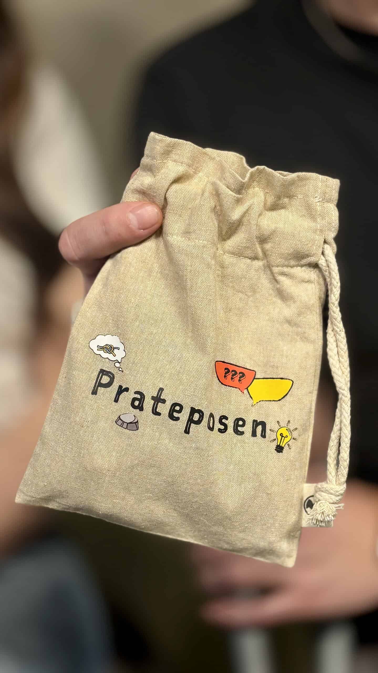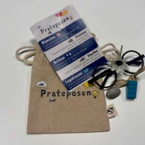 Prateposen er perfekt for familiegrupper og for samtaler i familien. Bruk gjenstandene i posen til å dele noe i gruppen eller familien din.