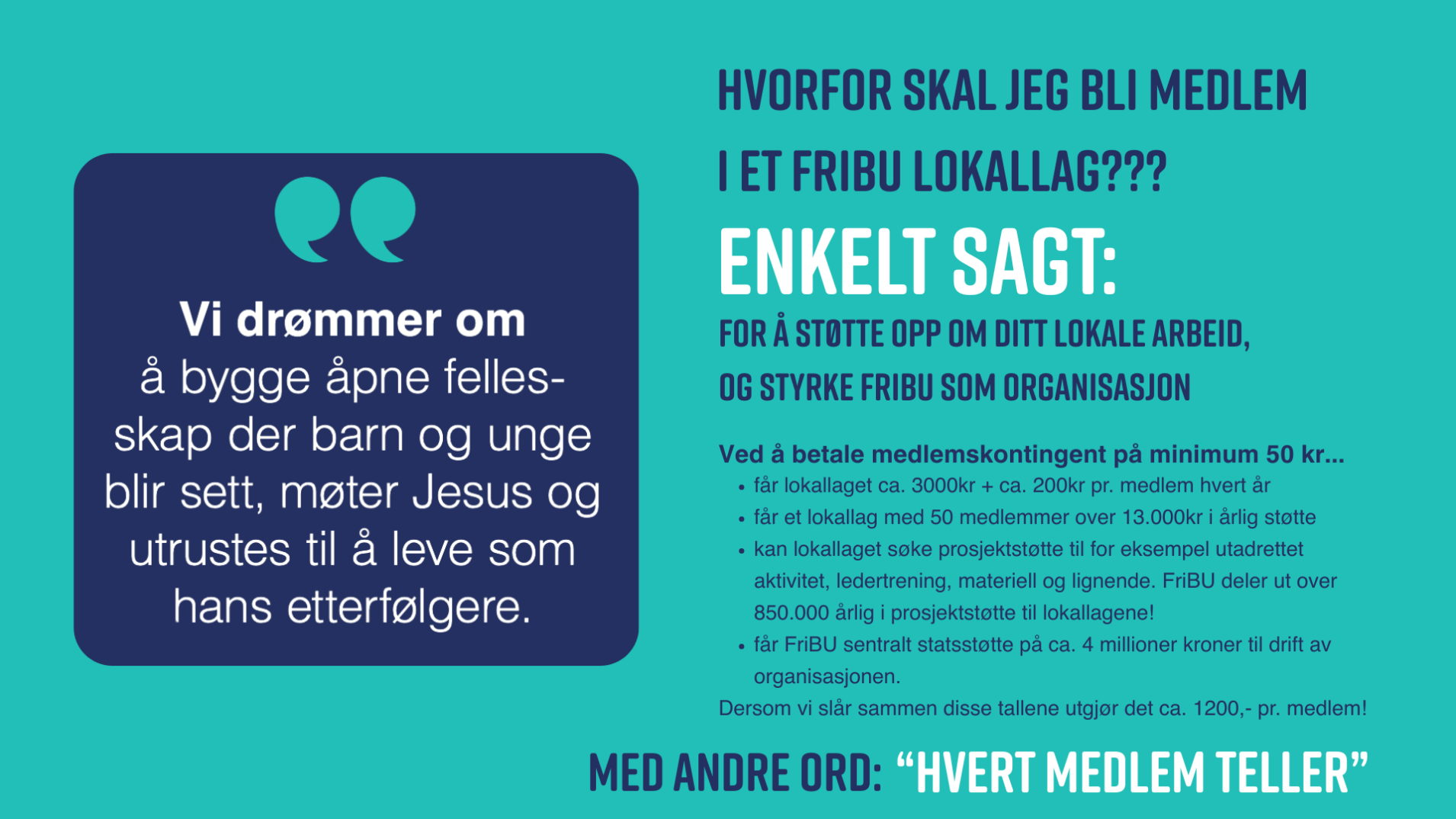 Det å innhente kontingent er viktig. Det danner grunnlag for lokallagets direktestøtte (driftstøtte) kommende år. Det danner også grunnlag for støtte til FriBU som organisasjon. Ett medlem i et FriBU lokallag utgjør totalt så mye som ca. 1200 kr i støtte til organisasjonen og lokallaget.